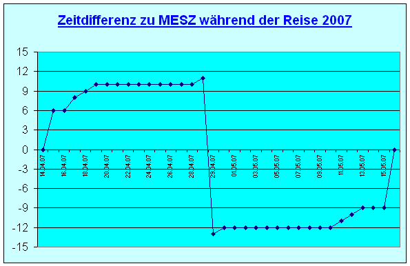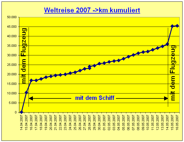 | Sa | 28.04.07 | 16 | Auf See (Überschreitung der Datumsgrenze um 23:05) | 30 | +11/-13 | 829 | ||