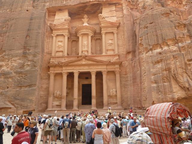 Aqaba ist das Haupttor zu Jordanien und deren einziger Zugang zum Roten Meer. Heute ist Aqaba ein Fischerort und war für uns Ausgangspunkt für eine Busfahrt in die verlassene Felsenstadt Petra, der "rosaroten Stadt der Nabatäer". Sie gilt heute als eine der größten Sehenswürdigkeiten des Nahen Ostens. |
