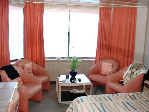 | Unsere Suite 9050 auf Deck 9 mit den Bay-Windows war optimal ausgestattet. Die M/S Norwegian Crown, die letztes Jahr noch M/S Crown Odyssey hieß und zu Orient Lines gehörte, befand sich auf einer Weltreise und wir buchten davon 3 Wochen. Die Einrichtungen, die Speisen sowie der Filippino-Service entsprachen den angegebenen 4-5 Sternen. Da dieses Schiff seit letztem Jahr nun zur NCL-Gruppe gehört begann man bereits mit dem NCL-Freestyle Cruising - Konzept, was uns bereits schon auf der Norwegian Dream imponierte. |