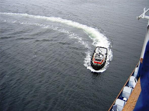 ----- das Schiff dreht im engen Hafenbecken ----- |