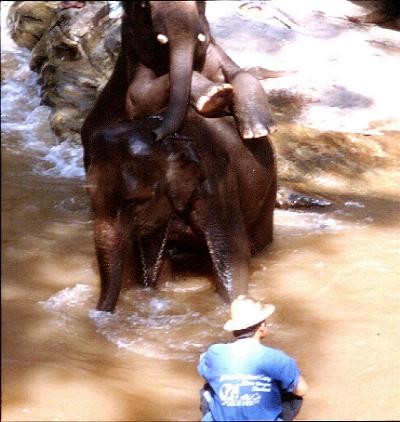 | sogar ein Vollbad | auf zur Show | Elefantenbaby, erst 5 Tage alt | danach Mittagessen im Orchideengarten |