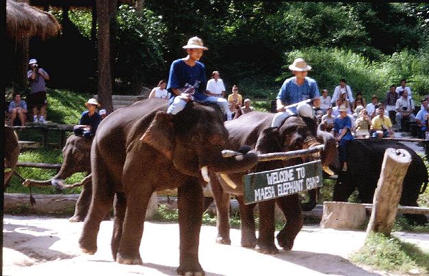| Der Ausflug zum Maesa Elefanten Camp war beeindruckend, wir erfuhren viel über die Art, dem Training und der Arbeit dieser gewaltigen Tiere, ein Ritt durch Wald und Fluß war aufregend. |