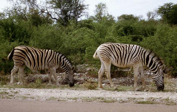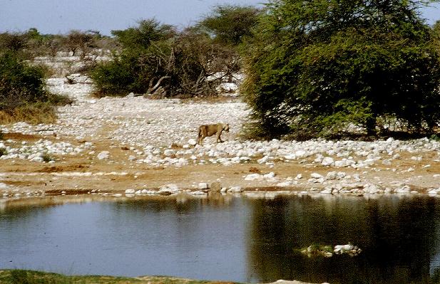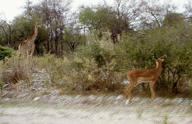 | Dies ist der größte Nationalpark Namibias und mit seinen ausgetrockneten Salzseen berühmt für Fata Morganas. Wir erlebten z.B. eine Giraffenherde in der Ferne mit noch längeren Füßen als diese schon haben, es ist unglaublich . |