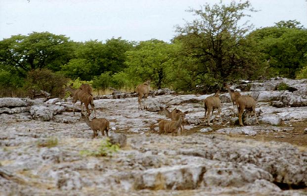 | getrockneter Salzsee | Gnu-Antilope | Überreste eines "Kills" | Kudu-Herde |