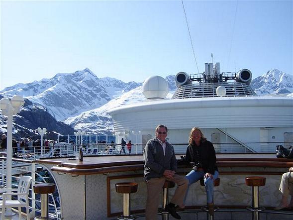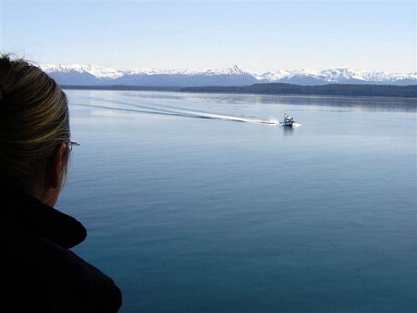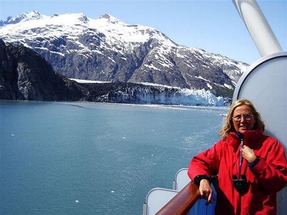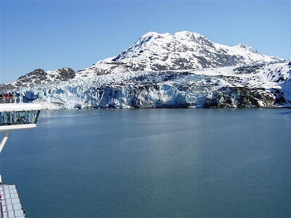 | Der Glacier Bay National Park ist der weltgrößte Naturpark und es wurden hier alle Alaska-Träume wahr: dramatische Eiswälle, steile Fjordwände, Eisschollen und dahinter schneebedeckte Berge bis 4700 m Höhe. An die 10 Gletscher strömen in die 110 km lange, weit verzweigte Meeresbucht. Kaum zu glauben, daß es diese riesige Bucht vor 200 Jahren noch gar nicht gab. Nachdem am Morgen 2 Park Ranger an Bord kamen, die das Schiff laufend mit Informationen zu den schönsten Stellen lotsten und durch Vorträge bereicherten, zählen wir diesen wunderschönen Sonnentag zum schönsten dieser Reise und waren stark beeindruckt von diesem großartigen Erlebnis. |