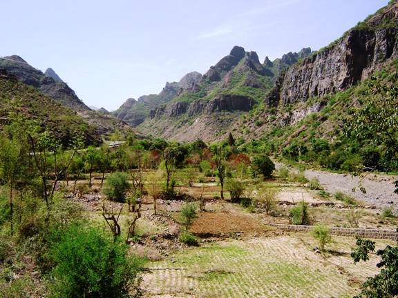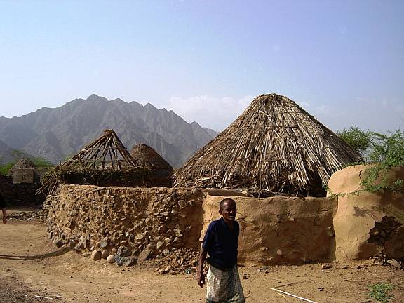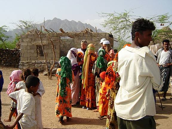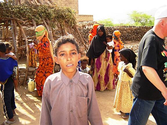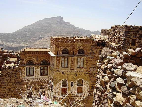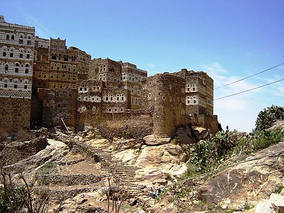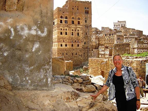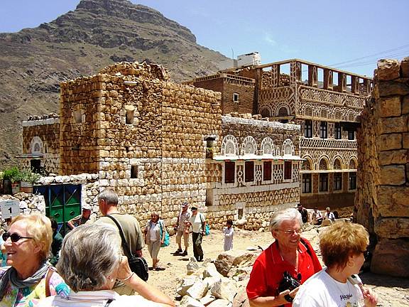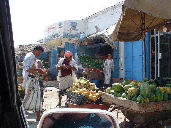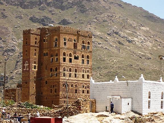 Während Karl mit einem Taxi diese Stadt mit Umgebung besichtigte, unternahm Gitti eine Tagestour ins Gebirge bis auf 2600 m. Die Fahrt mit Bus und Jeep ging durch die Tihama-Ebene in Richtung Osten nach Menacha. Vorbei an Bananen- und Zuckerrohrplantagen sah man die unterschiedlichste Architektur der Dörfer, von einfachen Rundhütten bis zu den eindrucksvollen Lehm- und bis zu 7 Stockwerk hohen Steinhochhäuser in dem Bergnest Hajjara. Menacha selbst liegt auf einem hohen Berg und ist der wichtigste Ort auf der Verbindung vom Hochland zum Meer. Interessant waren auch ein jeminitisches Mittagessen sowie die Menschen mit ihren Lebensgewohnheiten. |