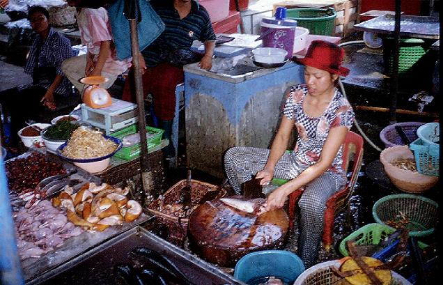 | Rikschafahrt zum Nachtmarkt | im Tempel gab es als Göttergabe Schweineköpfe | am Fischmarkt | Schulbesuch |