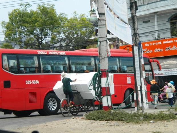 Der erste Eindruck von Vietnam nach den chinesischen Städten war natürlich gewaltig und schon am Straßenbild erkennbar, denn die Straßen der großen chinesischen Städte, die wir besuchten, waren voll mit Autos, vor allem teuren Limousinen (AUDI, BMW, Mercedes, etc.) und hier in Vietnam beherrschten die Zweiräder, Motorroller und -räder, Mopeds und Fahrräder das Straßenbild und nur ab und zu kam ein Auto. Eine gewisse Armut war gleich spürbar, doch die Menschen wirkten zufrieden. |