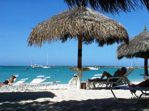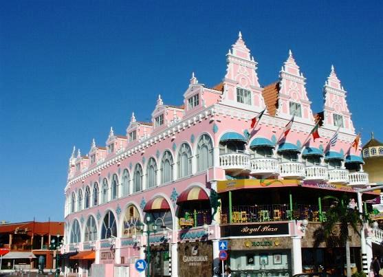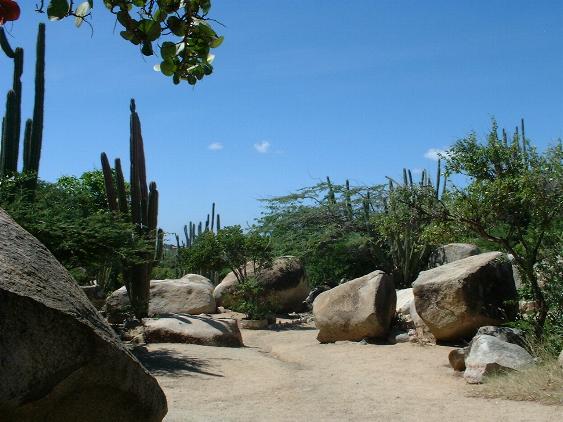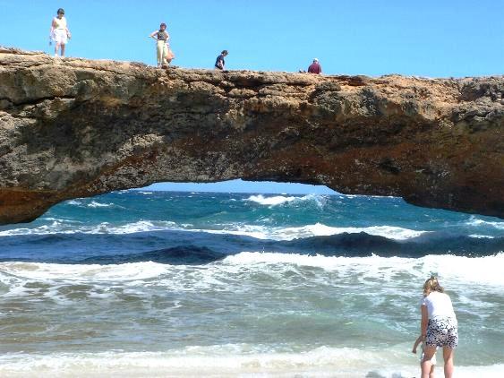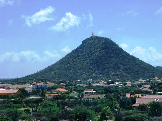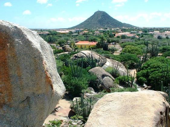 | Aruba ist Teil der ABC-Inseln, zu denen noch Bonaire und Curaçao zählen. Aruba, die kleinste und westlichste, ist zugleich das letzte Glied der Antillen. Die Insel liegt 30 km von der Küste Venezuelas entfernt, ist 30 km lang und nirgends breiter als 9 km. Vom Berg Jamanota (188 m) blickt man auf eine weitgehend flache Landschaft herab. Die Ostküste mit ihrer einsamen und windigen Felsenküste bietet einen reizvollen Kontrast; Gischt und Wellen haben hier bizarre Formen aus den Felsen gespült |
