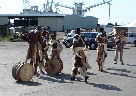| Sonnenaufgang | der Lotse kommt | seine Tasche wird abgeworfen | Begrüßung im Zulu-Land |