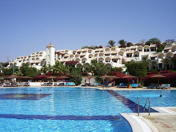 Diese Stadt auf der Halbinsel Sinai war bis 1967 nicht mehr als ein Grenzposten bevor man die touristischen Möglichkeiten dieses Orts entdeckte. Es entstand eine Hotelstadt mit Flughafen und Sportanlagen. Besucher können nun die Sonne, die herrlichen Strände und das vielfältige Unterwasserparadies in vollen Zügen genießen. Wir verbrachten einige Stunden mit baden und schnorcheln in dem wunderschön gelegenen SOFITEL Hotel. |