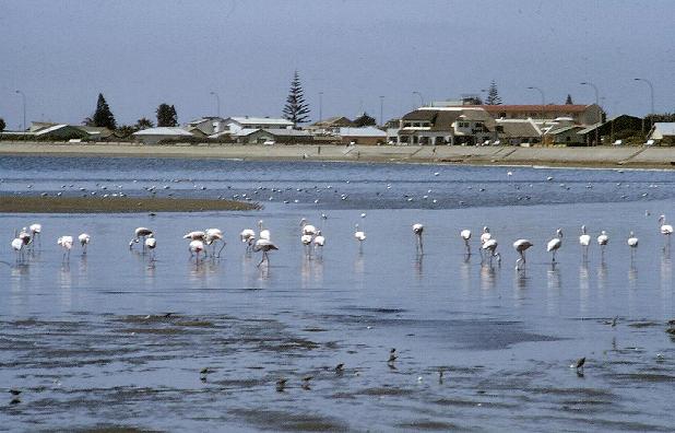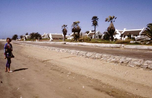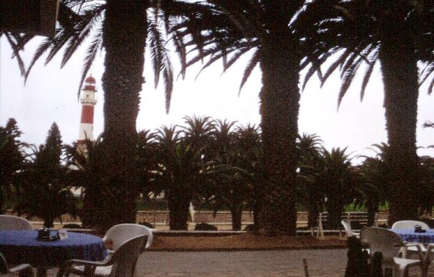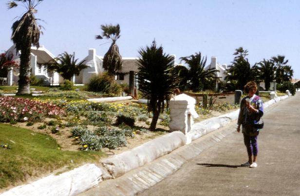 | Durch die heiße Namibwüste erreicht man das kühle namibische "Paradies" Swakopmund und Richtung Süden vorbei an den Dünen den Kurort Walfisbai. Swakopmund ist der Alterssitz reicher Namibier mit einer wunderschönen Palmenpromenade . Nördlich von hier fährt man entlang der Salzstraße zur Skelettküste . Die deutsche Sprache ist hier noch stark vorhanden . |