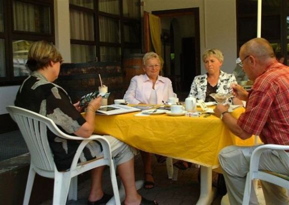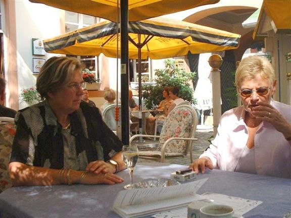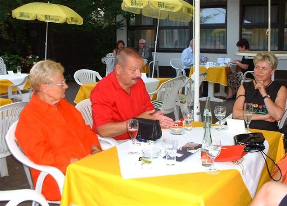 | Das heißeste Wochenende des Jahres verbrachten wir mit Erfahrungs- und Gedankenaustausch bei schönen gemeinsamen Stunden in Bad Dürkheim. Besonders freute es uns, daß Jose gekommen war, verständlicherweise war das Hauptthema heuer der Tod von Lui, jedoch hoffen wir, daß wir Jose in vielen Gesprächen bei der Bewältigung der Probleme behilflich waren. Ausflug war dieses Mal eine Cabrio-Fahrt nach Neustadt an der Weinstraße mit Stadtbummel und Kaffeepause im Tiffany. |