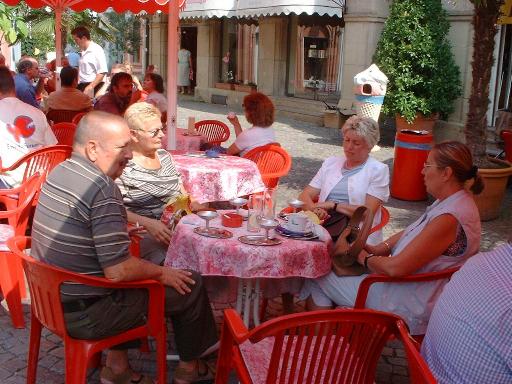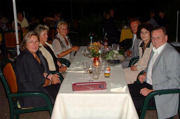 Freitagabend waren wir wie immer im Spielcasino und freuten uns dort auch die beiden Pfälzer Bruno und Rosi Aug zu treffen. Unser Samstagsausflug ging dieses Mal über die Weinstraße ins Elsaß, vorbei am Deutschen Weintor besichtigten wir das schöne Städtchen Wissembourg (Weißenburg) und probierten die dortige Spezialität, den Flamkuchen. Bei einem guten Dinner im Garten des Dorint-Hotels genossen wir den warmen Sommerabend mit dem Austausch unserer Erlebnisse des verflossenen Jahres und guten Ratschlägen bis spät in die Nacht. Mit dem obligatorischen Eisessen beim Italiener am Marktplatz beendeten wir am Sonntagmittag dieses Jahrestreffen und fuhren nachmittags nachhause. |
