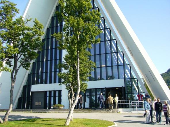 | Tromsø ist mit rund 52.000 Einwohnern die größte Stadt im Norden und liegt 344 km nördlich des Polarkreises. Sie liegt auf einer Insel und ist verbunden mit dem aus Halbinseln bestehenden Festland, das durch eine imposante Brücke (1036 m Länge) verbunden ist. Viele schmückende Beinamen hat die Stadt, z.B. "Eismeerstadt", "Tor zum Eismeer" oder "Paris des Nordens", dies wohl aufgrund ihrer malerischen Holzhäuser mit den farbenprächtigen Fassaden. Der wichtigste Arbeitgeber ist das Universitätsklinikum in Nord-Norwegen (UNN) mit etwa 4.500 Angestellten. Weiter gibt es die bekannte Universität Tromsø, die Norwegische Fischereihochschule und das „Polarmiljøsenter“. Die Stadt weist eine Reihe von Sehenswürdigkeiten auf, u.a. die Eismeerkathedrale, das Tromsø-Museum, das Polaria-Erlebniscenter oder den Berg Storsteinen. |