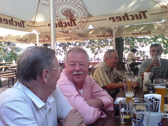 | Nach dem Besuch bei Siemens fand der weitere Nachmittag zur Unterhaltung wie immer bei einem guten Schoppen im Garten unseres Stammlokals "Marientorzwinger" statt. |